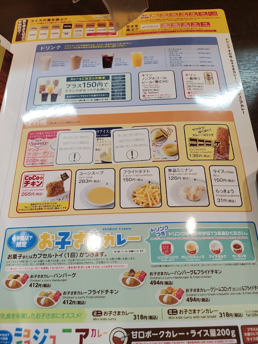 At CoCo Ichiban-ya, you have the unique opportunity to customize your meal according to your preferences. Whether you're a fan of classic vegetable curries like the Eggplant Curry or the vibrant Vegetable Curry, or you lean towards seafood with offerings like the Fried Fish Curry and Asari Clam Curry, there’s something to satisfy every palate. The menu even caters to younger diners with a delightful children's menu, ensuring that every member of the family finds something to enjoy.